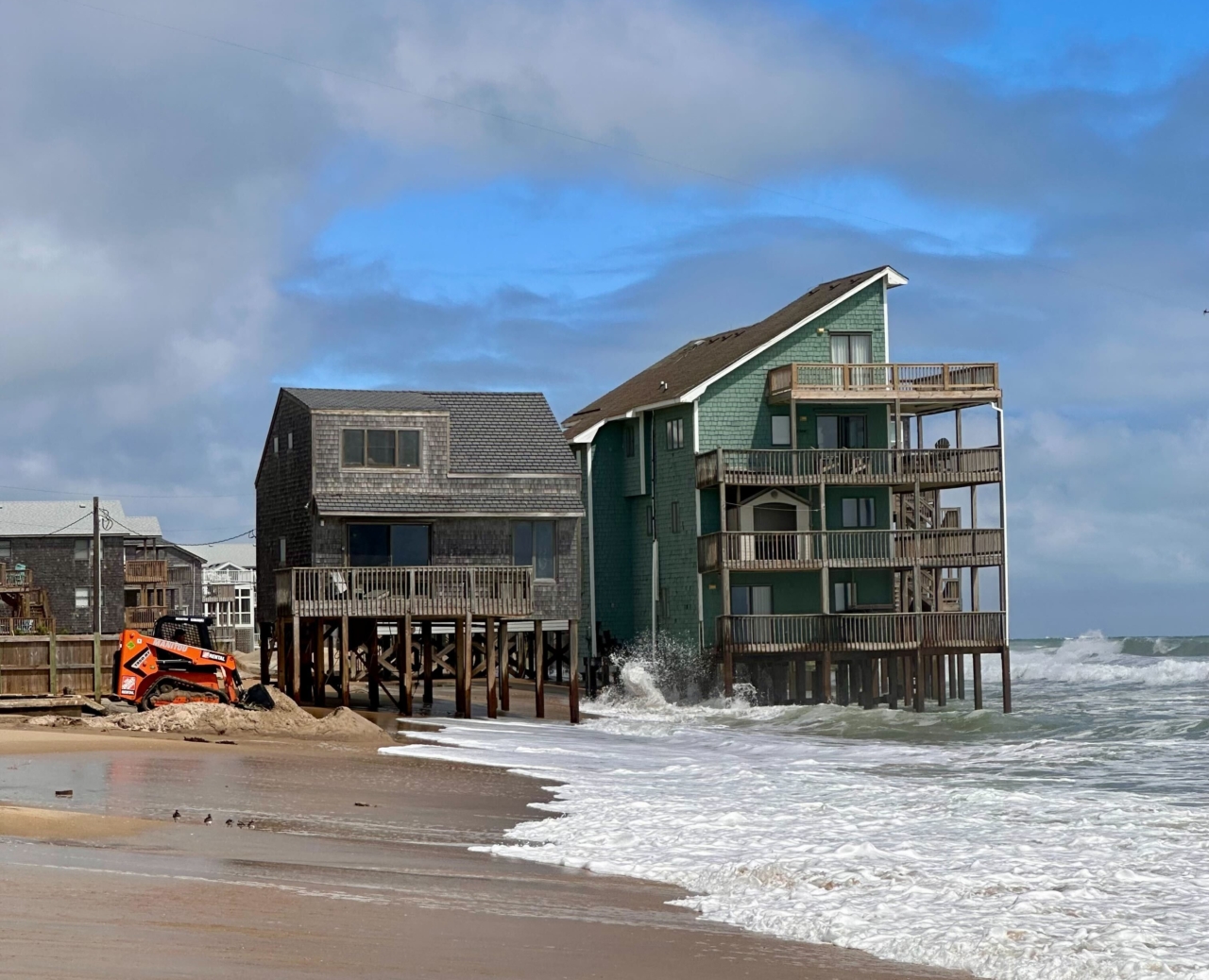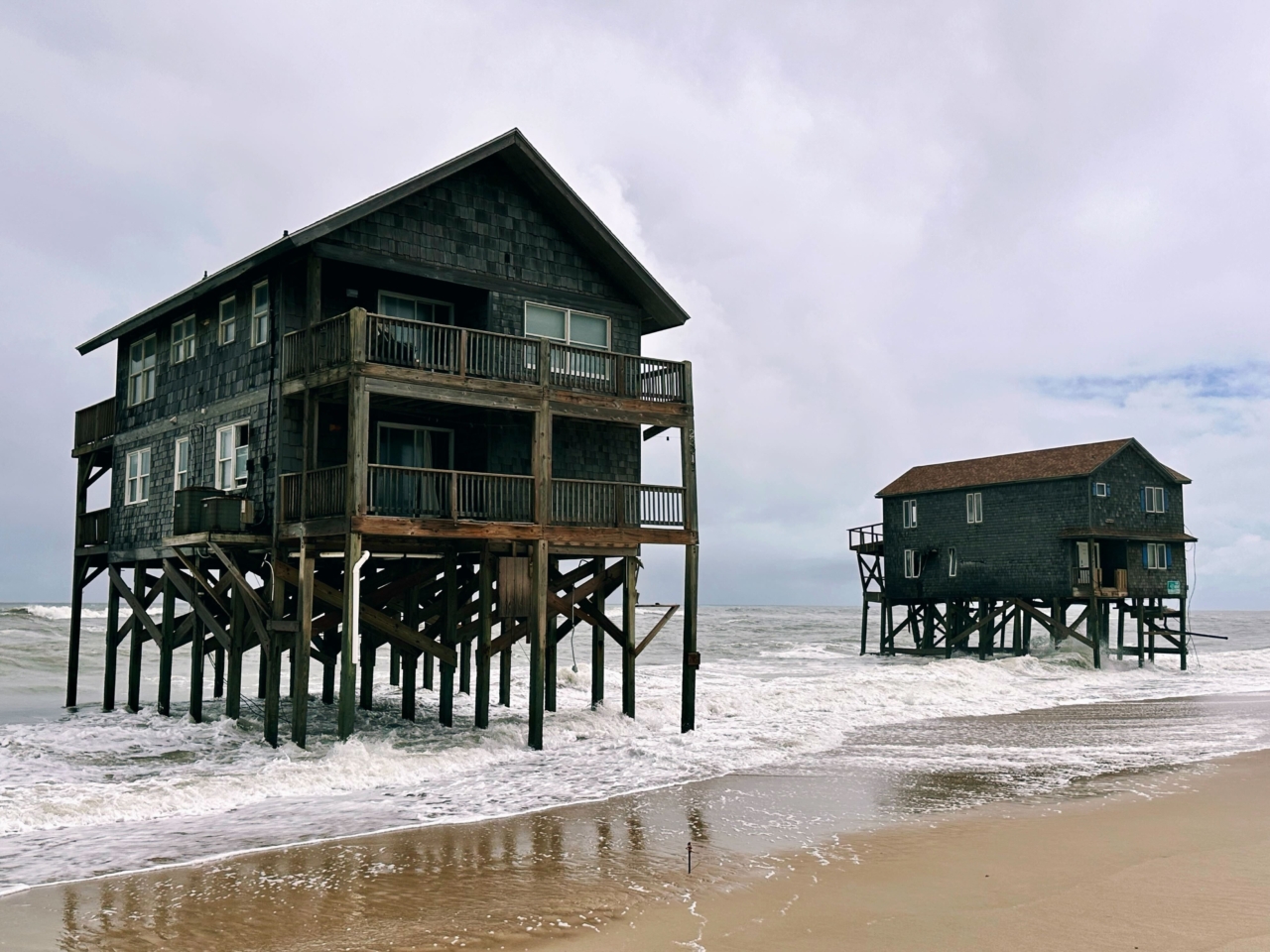 Homes in the surf zone in Buxton, NC, Fall 2025. Photos © Hannah Henry, CECL